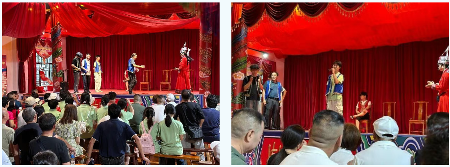 在舞台下观看的其他实践团成员们,也被这独特的婚俗仪式深深吸引。他们目不转睛地盯着舞台,不时发出惊叹声和掌声,为新人和伴郎的精彩表现喝彩。他们通过手机和相机记录下这难忘的瞬间,希望通过这些照片和视频,让更多的人了解畲族婚俗文化的独特魅力。