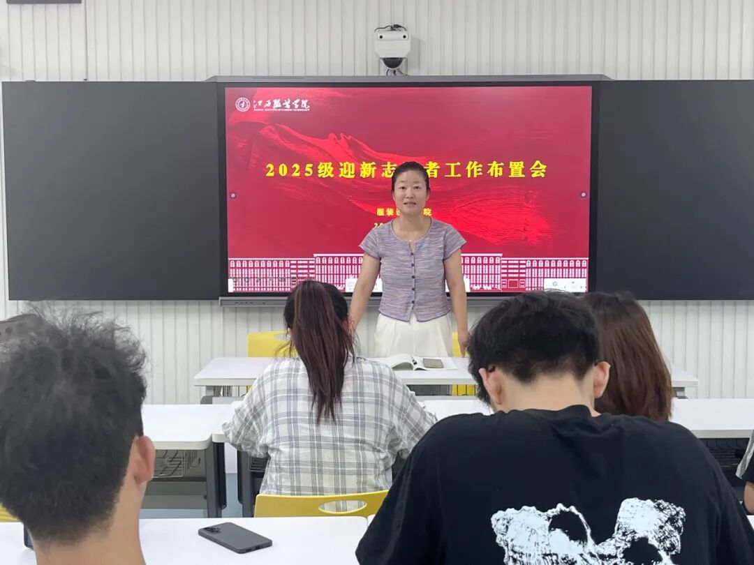2025级新生辅导员黄睿瑶、陈姝老师向大家做自我介绍并分别对此次迎新志愿者提出以下四点要求。一是要提高积极性和主动性,大力弘扬志愿服务精神,克服困难,主动应对工作;二是及时做好交接工作,全力保障各环节井然有序;三是志愿者们需以饱满的热情和专业服务水准给新生们留下美好的第一印象;四是若遇突发情况及时联系负责人员,为新生营造一个稳定和谐的入学环境。