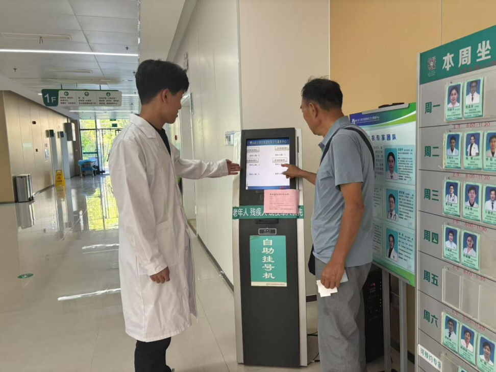 在实践岗位上,刘俊嘉以多维度服务诠释志愿精神,为社区居民健康保驾护航。作为门诊导医志愿者,他每天清晨提前到岗,细致整理导医台宣传资料,以饱满的热情迎接每一位就诊居民。面对咨询者,他耐心倾听需求,用通俗易懂的语言解答疑问,精准指引科室方向、协助完成挂号缴费;遇到行动不便的老人,他主动上前搀扶,全程陪同完成就医流程,用贴心服务温暖人心。