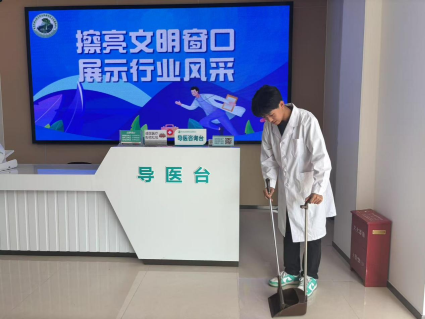 环境卫生是医疗服务有序开展的重要保障,刘俊嘉主动扛起卫生清洁与环境维护的责任。他穿戴好清洁装备,每日对门诊大厅、候诊区等人员密集区域进行全面清扫,细致清理地面杂物,擦拭窗台、座椅、自助挂号机等公共设施;严格按照配比调配消毒液,对门把手、电梯按钮等高接触部位重点消毒,定时更换清洁垃圾桶,杜绝异味与细菌滋生。发现走廊拐角墙面有污渍时,他立即找来专用清洁剂,细致处理直至墙面恢复洁净。