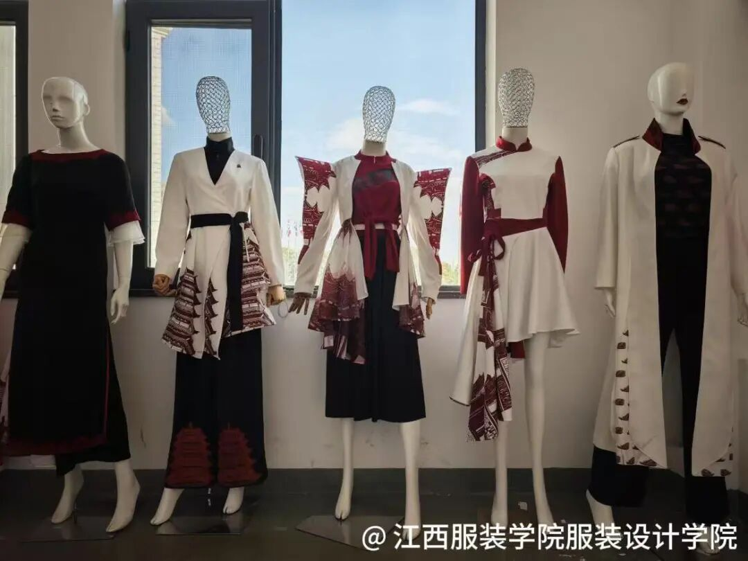 《映山红韵》系列服装,从革命时期军装中汲取设计灵感,精心保留口袋、衣领等经典元素,同时紧扣当代女性的审美偏好与穿着习惯。热烈似火的红色主调,如革命岁月里的热血般滚烫,象征着先辈们的赤诚与激情;纹样选取井冈山随处可见的映山红,它是革命精神的生动象征,红色主调与映山红纹样相互映衬,形成强烈视觉对比,寓意着坚韧不屈与对希望的执着追寻。露背、不对称裙摆等巧思设计,突破传统服饰的保守感,既展现出温婉优雅的气质,又蕴含着中国传统服饰的细节之美,且兼具实用性与商业价值,借由服装这一载体,深情传递井冈山红色文化与深厚的爱国精神。