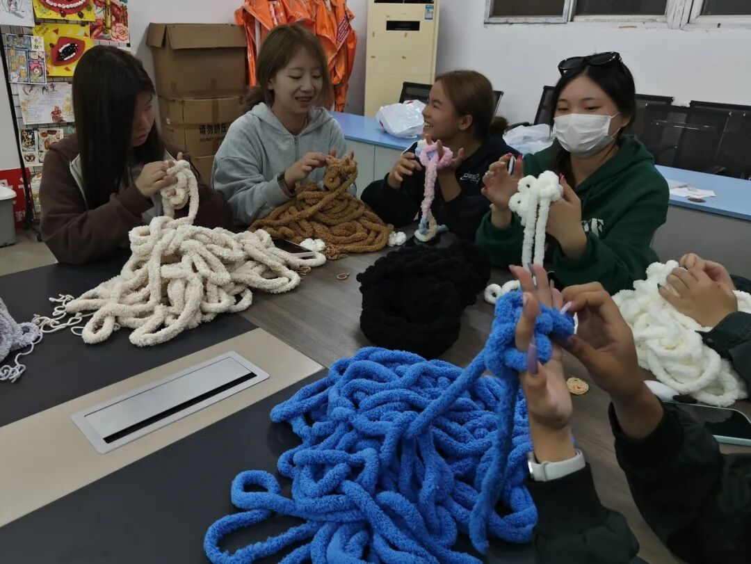 手工制作环节是活动的核心。社团特别邀请了一位钩织经验丰富的“小老师”现场指导,针对不同编织基础的成员,“小老师”从毛线挑选、起针手法等基础步骤讲起,再到简单花纹的编织技巧,通过实物演示、手把手教学的方式,耐心解答大家的疑问。遇到成员出现漏针、松紧不均等问题时,“小老师”逐一细致纠正,活动室里毛线翻飞、交流声不断,成员们专注投入,将对山区孩子的关爱融入每一个针脚。