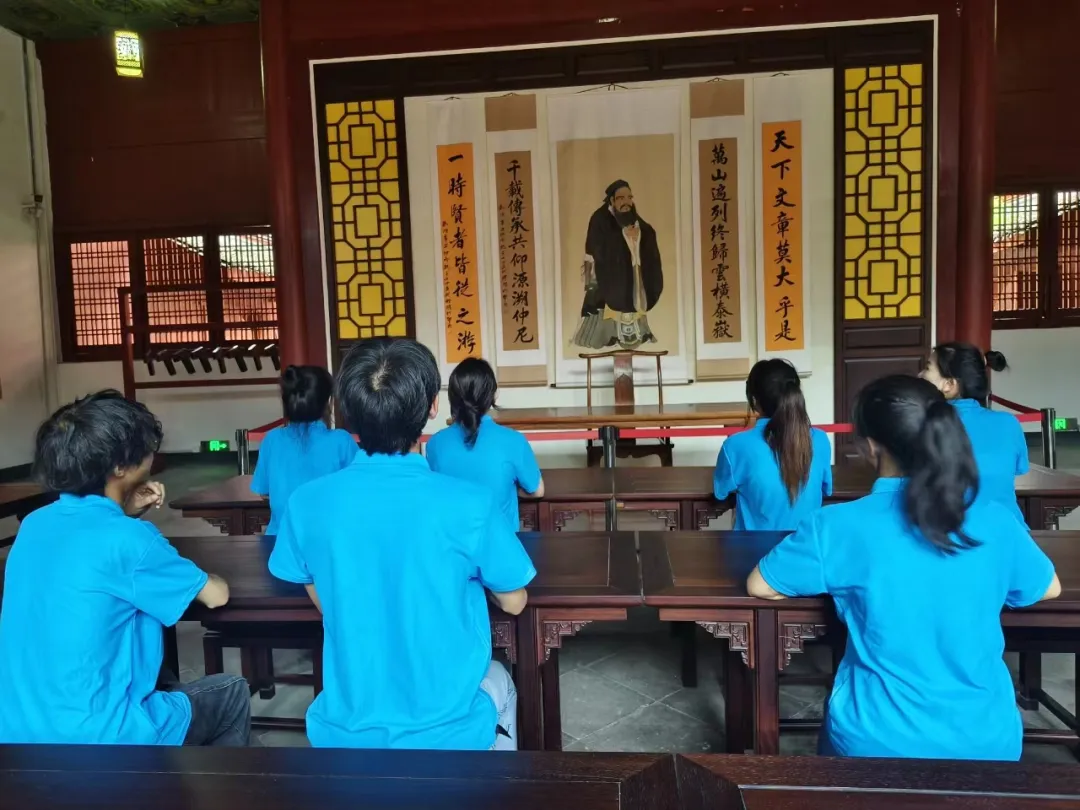 儒家思想,自古代以来,以其温和而睿智的内涵与深远的影响力,成为中国传统文化的主干。孔庙的主体建筑,名为大成殿,此殿不仅是孔庙的核心部位,更是祭祀孔子的主要场地。大成殿的建筑风格,主要遵循中国古代的传统建筑形式,采用了重檐歇山顶的设计,面阔九间,进深五间,这一设计寓意着孔子的思想能够跨越时空,影响古今。大成殿见证了儒学从古至今的传承与发展,无时无刻不在诉说着礼义、仁爱、中庸之道的永恒魅力。在王袭老师的引导下,团队成员齐心协力,通过诵读儒家经典的方式,追溯先贤的足迹,体验儒家文化的博大精深。