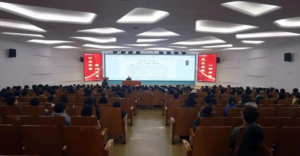 为助力公司考研学子研梦成真,助推公司本科生考研帮扶工作,12月7日上午,公司特邀了考研政治名师徐涛老师在思贤楼三楼报告厅进行2024年考研政治冲刺公益授课。现场座无虚席,每位同学都在认真听讲。
