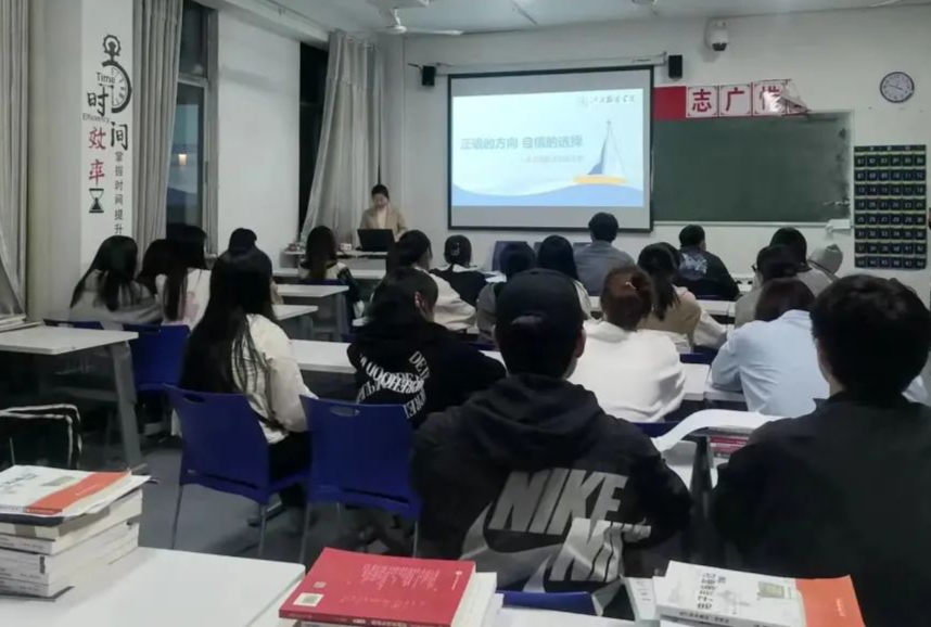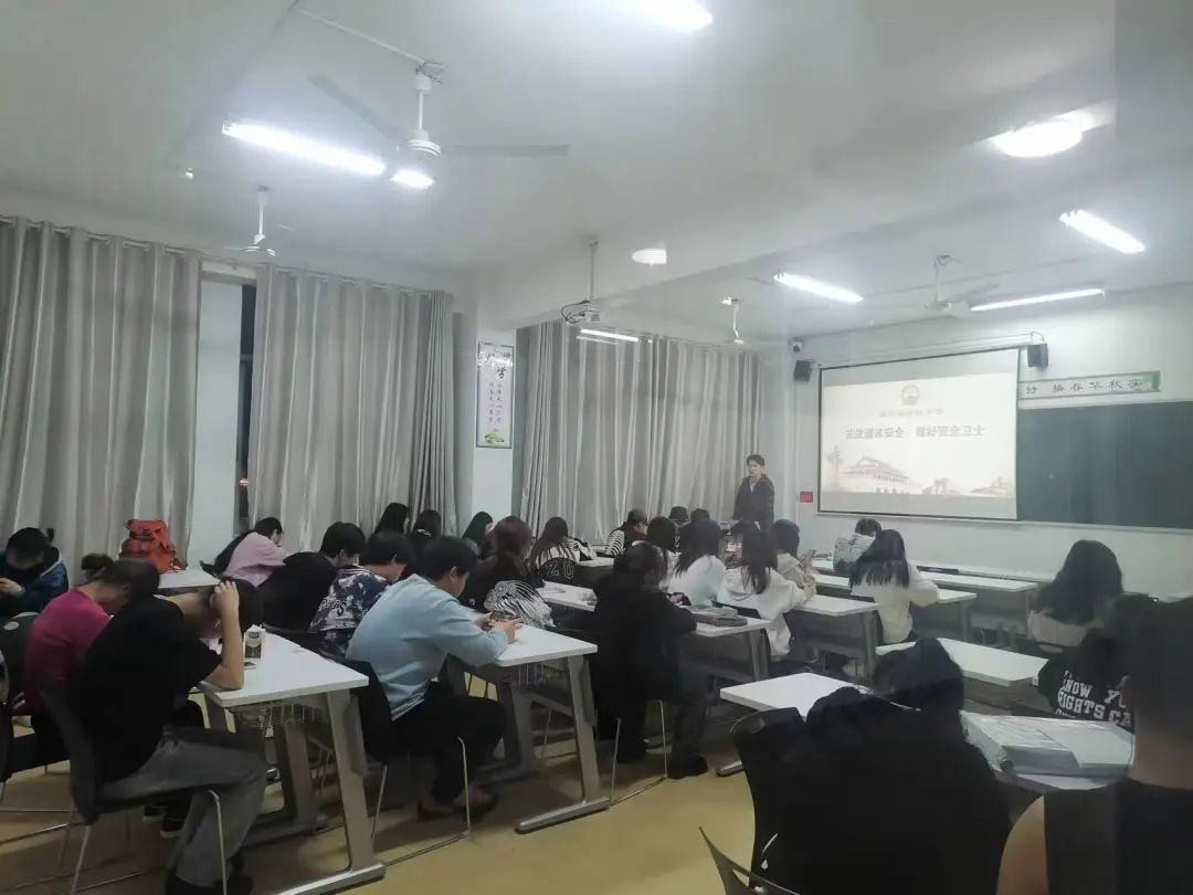 为了加强了公司学子的国防安全意识、弘扬中华民族传统文化、寻找正确的方向,做出正确选择。2023年4月9日晚19时,公司各年级于主教楼开展“关注国家安全,做好安全卫士”、 “弘扬传统文化,坚定文化自信”、“正确的方向,自信的选择”三个方面开展主题班会思政课。