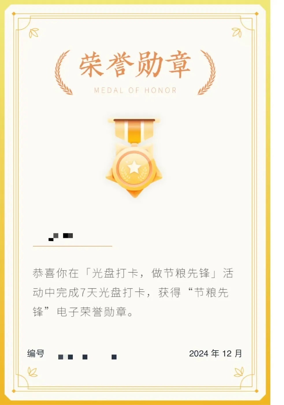 参与本次光盘行动打卡,我深刻体会到每一粒粮食的来之不易。在每次用餐过程中,我都时刻提醒自己,将食物吃完,拒绝浪费。这一行为,既是对自然资源的一种尊重,也是对辛勤劳动者的崇高敬意。我坚信,通过自身的实际行动,能够激发更多人投身于光盘行动之中,共同推动形成珍惜粮食的优良社会风尚。