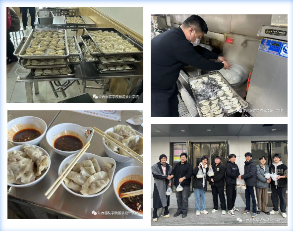 冬日虽冷,却挡不住江服的爱和暖;家乡虽远,但感受到了家的温馨。这热腾腾的水饺不仅让在校的同学们在寒冬感受到了家的味道和温暖,弘扬了传统文化,还增强了同学们的凝聚力。我们将继续努力,为同学们提供更多有益身心的活动,为大家的校园生活增添色彩。在未来,分团委员工会将继续秉承“全心全意为同学服务”的宗旨,凝心聚力,在服务同学的生动实践中努力贡献青春力量。