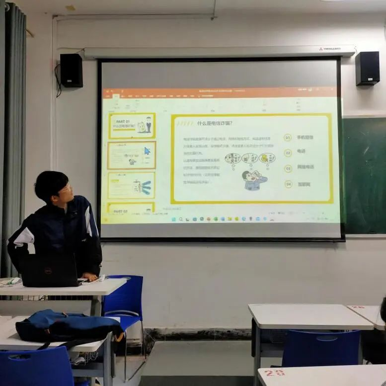 此次活动分为“什么是电信诈骗”、“高校电信诈骗的常见形式”、“如何识别防范电信诈骗”、“上当后的补救措施”等四个方面。各班团支书给同学们讲解了电信诈骗的定义以及手机短信、电话、网络电话、互联网等四个电信诈骗的形式;随后,从冒充电商物流、客服诈骗,刷单返利诈骗,注销“校园贷” 诈骗,网络游戏虚假交易诈骗,网络兼职诈骗等六个方面讲述了电信诈骗的常见形式;接着通过视频中的案例分享,大家认识到电信诈骗的危害,警钟长鸣并且提高了电信诈骗防范意识;最后,大家懂得了如何识别防范电信诈骗以及上当后的补救措施。