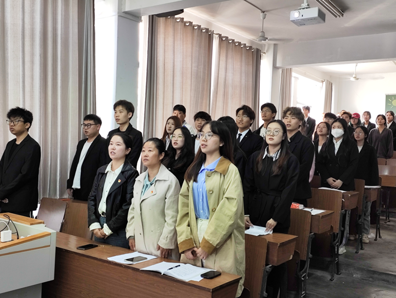 会议第一项,全体起立奏唱中华人民共和国国歌。