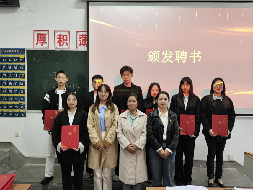 会议第五项由MK体育学工办主任张敬玲为第一届班委联合会主要干部颁发聘书并与其合影留念。