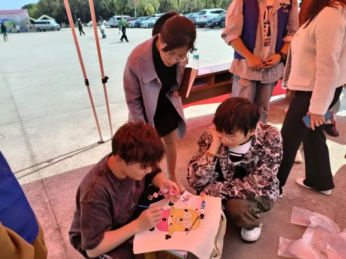 校学工处处长邓良峰、副处长侯娜娜、公司党委书记蓝岚以及副书记周洪英亲临活动现场,参观了同学们的手绘作品,对同学们的作品表示赞赏,并与同学们进行了亲切的交流,老师的到来拉近了师生之间心与心的距离。