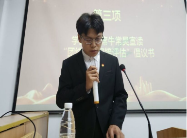 接着MK体育员工会主席牛常昊同学宣读了“团结奋进迎接评估”倡议书,使在场的每位师生深刻地认识到,本科教学合格评估是关系公司建设发展的大事,与全体同学的切身利益息息相关,让我们以主人翁的奋斗姿态、以青年老员工的朝气、勇气、底气与全校教职员工一道信心百倍的接受教育部本科教学工作合格评估,并争取以优异的表现通过评估!