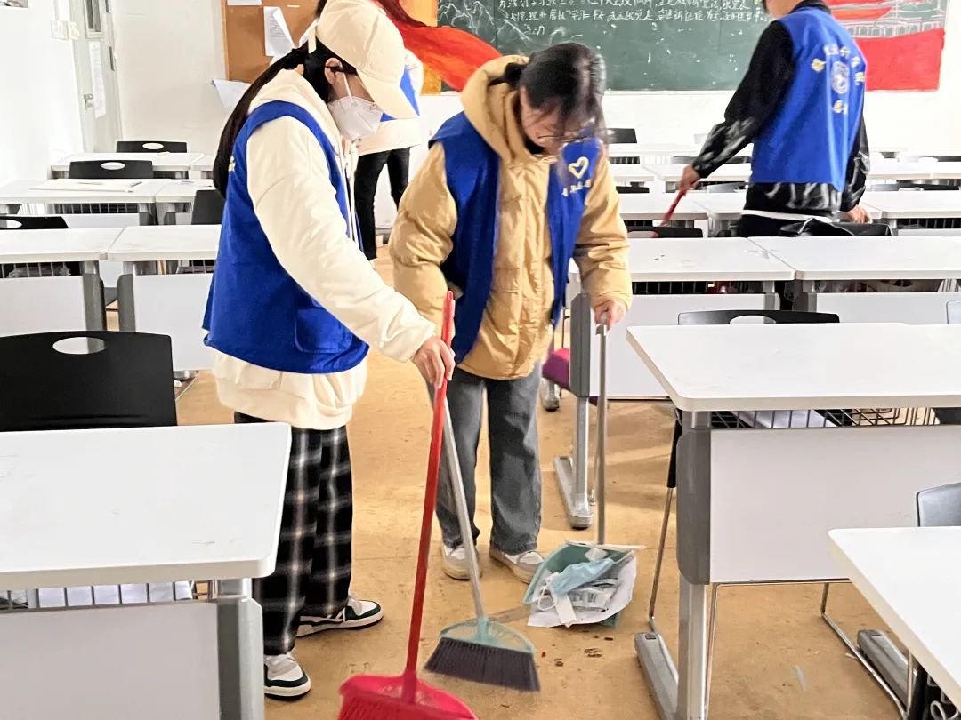 此次活动由班级为单位,在负责人和班级负责人的带领下进行开展,员工们拿着打扫工具对分配的教室一一进行了打扫。在各负责人的领导下同学们分工明确,认真仔细的对教室的每个角落进行了细致的打扫,同学们的付出为教室又增添了一份光彩,也为美化校园环境贡献一份力量。