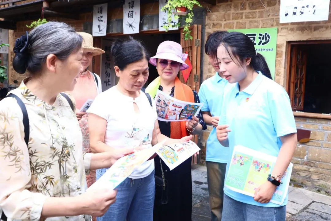 团队成员来到定南客家古城游客中心,开展“移风易俗树新风 文明和谐新征程”主题宣讲。团队成员精心准备,以丰富多样的形式和生动有趣的内容,向传递着新时代的文明理念,倡导摒弃陈旧陋习,树立全新风尚,共同踏上文明和谐的新征程。宣讲过程中,团队成员们以通俗易懂的语言,深入浅出地向村民们讲解了移风易俗的重要意义和具体内容。团队成员们列举了诸多陈旧陋习带来的不良影响,如铺张浪费的婚丧嫁娶、封建迷信活动等,同时强调了树立文明新风对于个人、家庭和社会的积极作用。为了让村民们更好地理解和接受,团队成员们还精心准备了生动有趣的案例和故事,并与村民们进行了互动交流。村民们积极参与,纷纷分享自己身边的见闻和感受,现场气氛热烈。