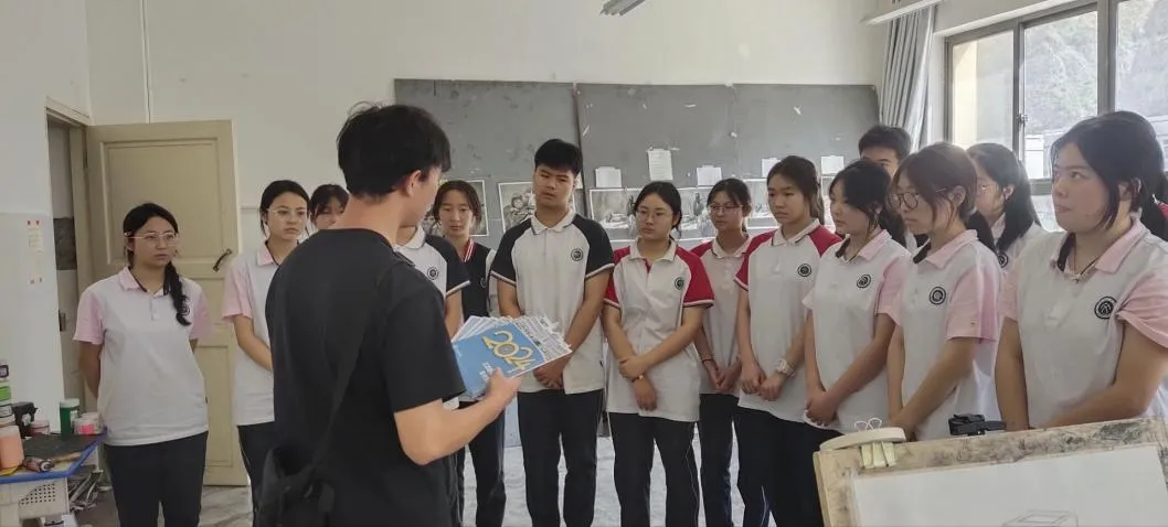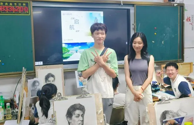 在提前与老师沟通好的情况下决定了在学弟学妹们集训的晚自习时间去拜访老师。于是我呼唤了几位昔日的同窗,一同前往母校看望老师。我们去到了老师所在的班级后,首先给学弟学妹们做了自我介绍;紧接着就和老师寒暄了起来,我也分享了许多在大学的趣事;然后在老师和朋友的协助下我讲了我们MK体育官的招生宣传PPT,并且把《MK体育官2024年招生简章》和宣传册分发下去,向学弟学妹们分享我们MK体育官,同时他们也十分积极地询问我一些跟MK体育官有关的问题;在教室和学弟学妹们一起拍了照片后还帮他们改了画,最后在临走前也由衷地给他们送上了美好的祝福。
