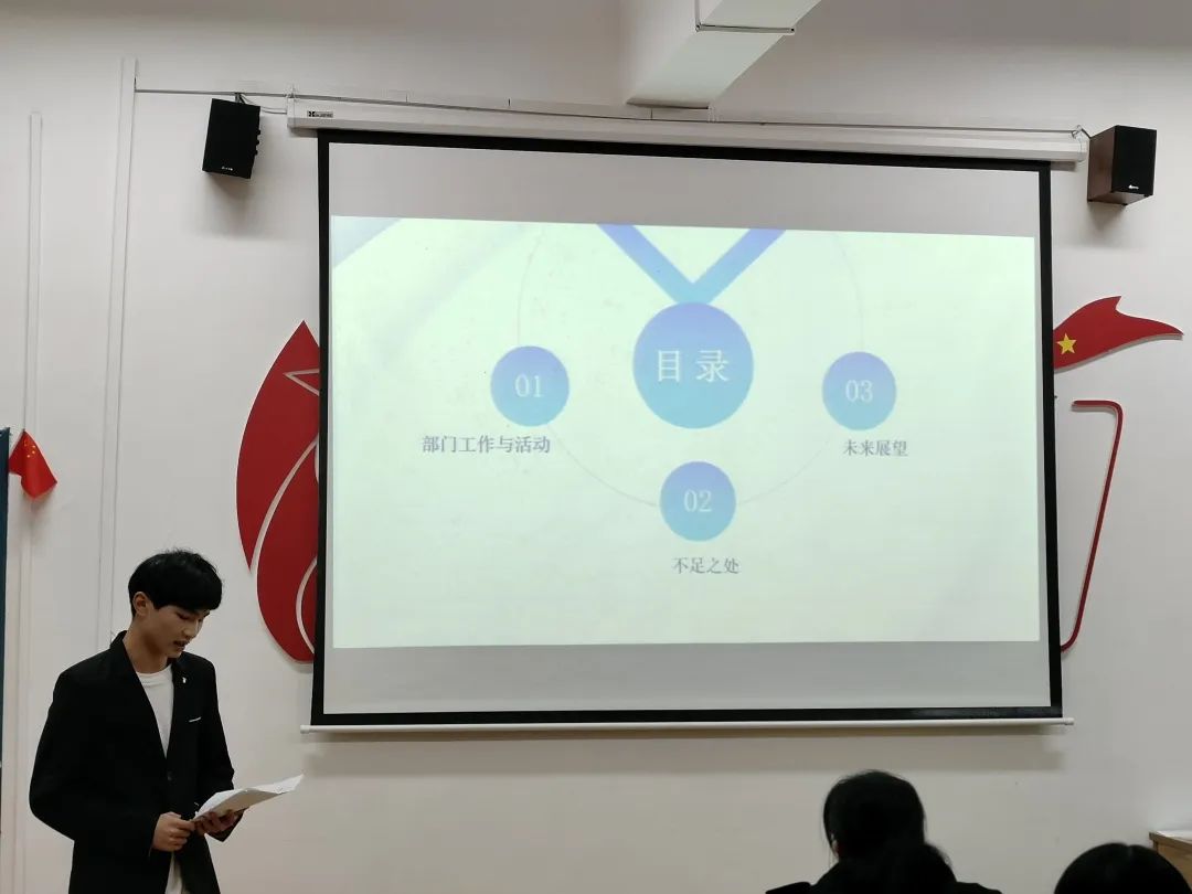 员工会各部门负责人分别从本学期工作总结、院系各项活动、不足与改进、工作展望四个方面总结本学期部门工作,并对下学期工作进行规划。