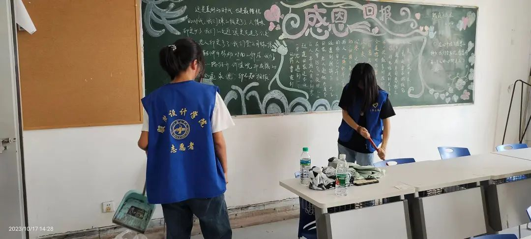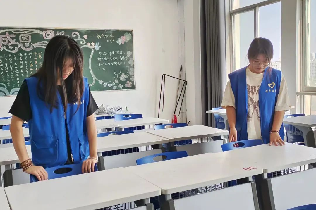 同学们在员工干部的带领下,拿着扫把、簸箕,抹布等工具,分工明确,有的将桌椅摆放整齐,有的帮助同学一同清扫垃圾,秉持着团结互助的精神,积极为校园的绿色环境贡献出自己的一份力量。经过同学们的共同努力,教室变得,干净整洁,井然有序。