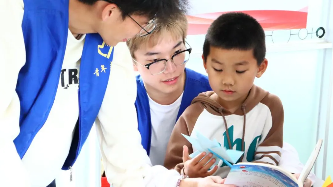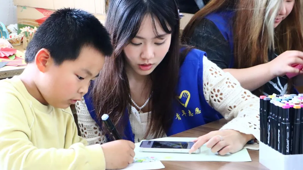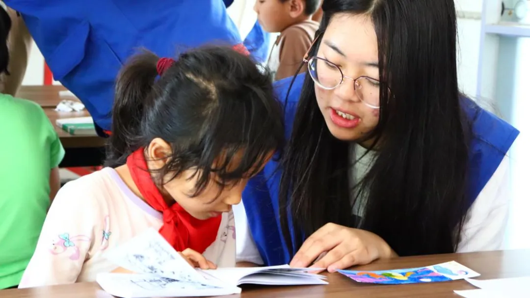 书籍是时间的交汇。捧一本书在手心,上下五千年的故事展现在眼前,和古人对话,与未来交流。这世上来来往往的伟大的人物都充盈在自己的心间,世界由此而存在。志愿者们和小朋友们共同阅读,帮助他们认识生僻字,陪他们阅读课外书。