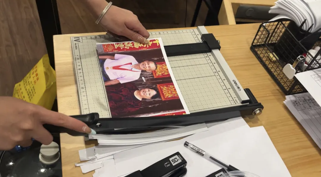 拍摄活动结束后,团队成员马不停蹄地操作打印机打印出一张张精美的照片。团队成员全神贯注地进行着照片裁剪工作,每一个动作都小心翼翼,力求边缘整齐美观。接着,又有条不紊地对照片进行装裱,每一个细节都处理得恰到好处,只为让照片呈现出最完美的效果。完成装裱后,团队成员亲自带着这些承载着美好回忆的照片,挨家挨户地为村民送到家中。村民们脸上个个洋溢着开心的笑容。