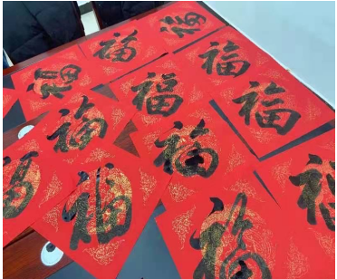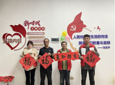 在金盆社区党员及干部的领导下,志愿者们来到香江国际小区,拉开活动的序幕。在活动现场上,志愿者们挥毫泼墨,在一张张红纸上写下福字与春联。为小区的居民们送上新春祝福。居民们一边观赏志愿者们的书法创作,一边挑选自己中意的春联,喜悦之情溢于言表。活动现场气氛热烈,群众参与度高,很好地营造了喜庆新年,欢乐祥和的节日氛围。
