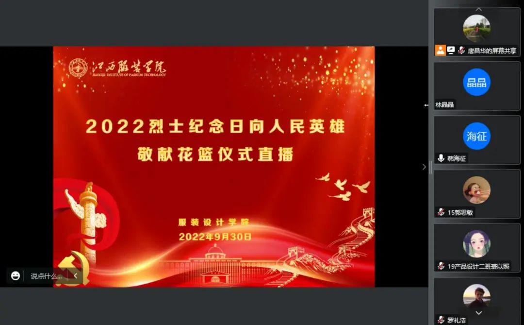 为深切缅怀革命先烈,致敬人民英雄,弘扬爱国主义精神,坚定理想信念,2022年9月30日,公司组织师生于腾讯会议观看“2022烈士纪念日向人民英雄敬献花篮仪式”现场直播。
