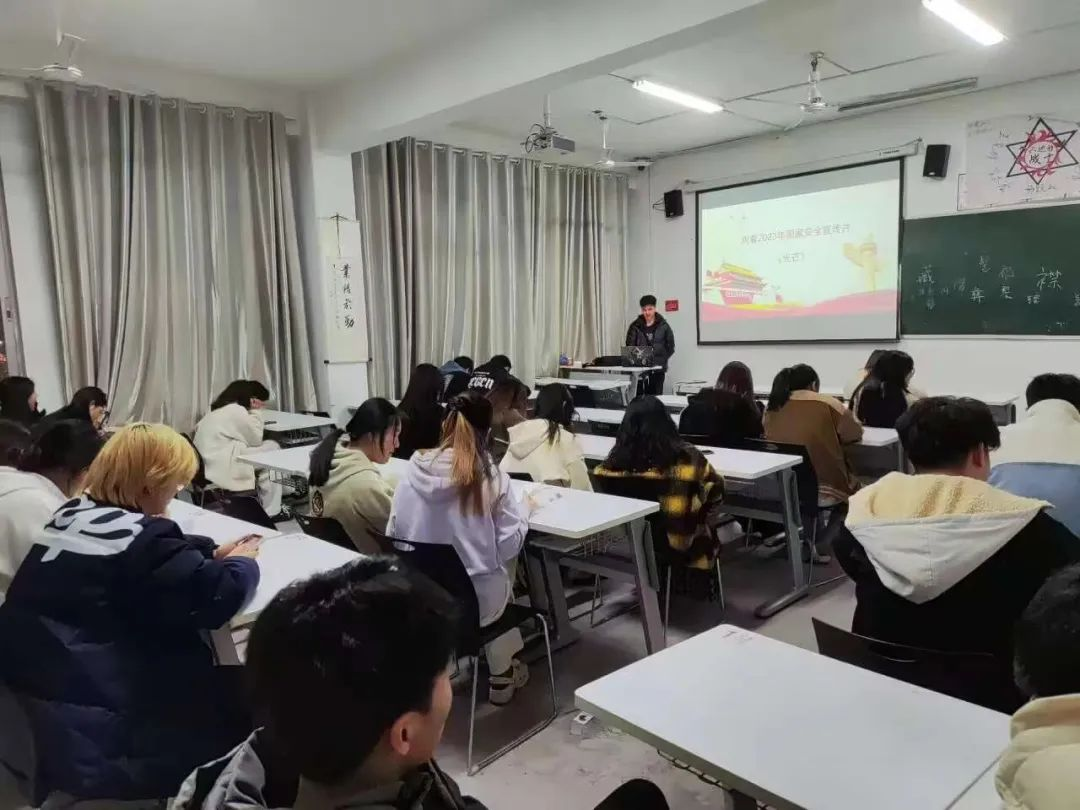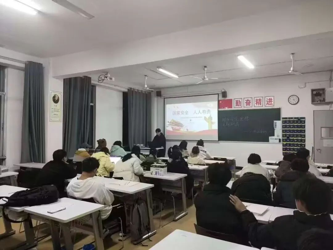 辅导员以国家安全为切入点,从“什么是国家安全”和“什么是全民国家安全教育日”、“国家安全包括哪些方面”、“哪些是危害国家安全的行为”、“发现危害国家行为及隐患如何举报”五方面展开主题班会。