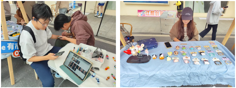 现场创新感十足,在各个展位前,参观者们被琳琅满目的创新产品所吸引。有小巧精致的饰品,有充满艺术感的钩织作品,有精致的首饰品,展现了精湛的工艺和独特的设计理念。创客们热情地向参观者介绍自己的作品,分享创作背后的故事和灵感。他们的激情与执着感染着每一个人,让人深刻感受到创新的魅力和价值,为校园增添了一抹绚丽的色彩。