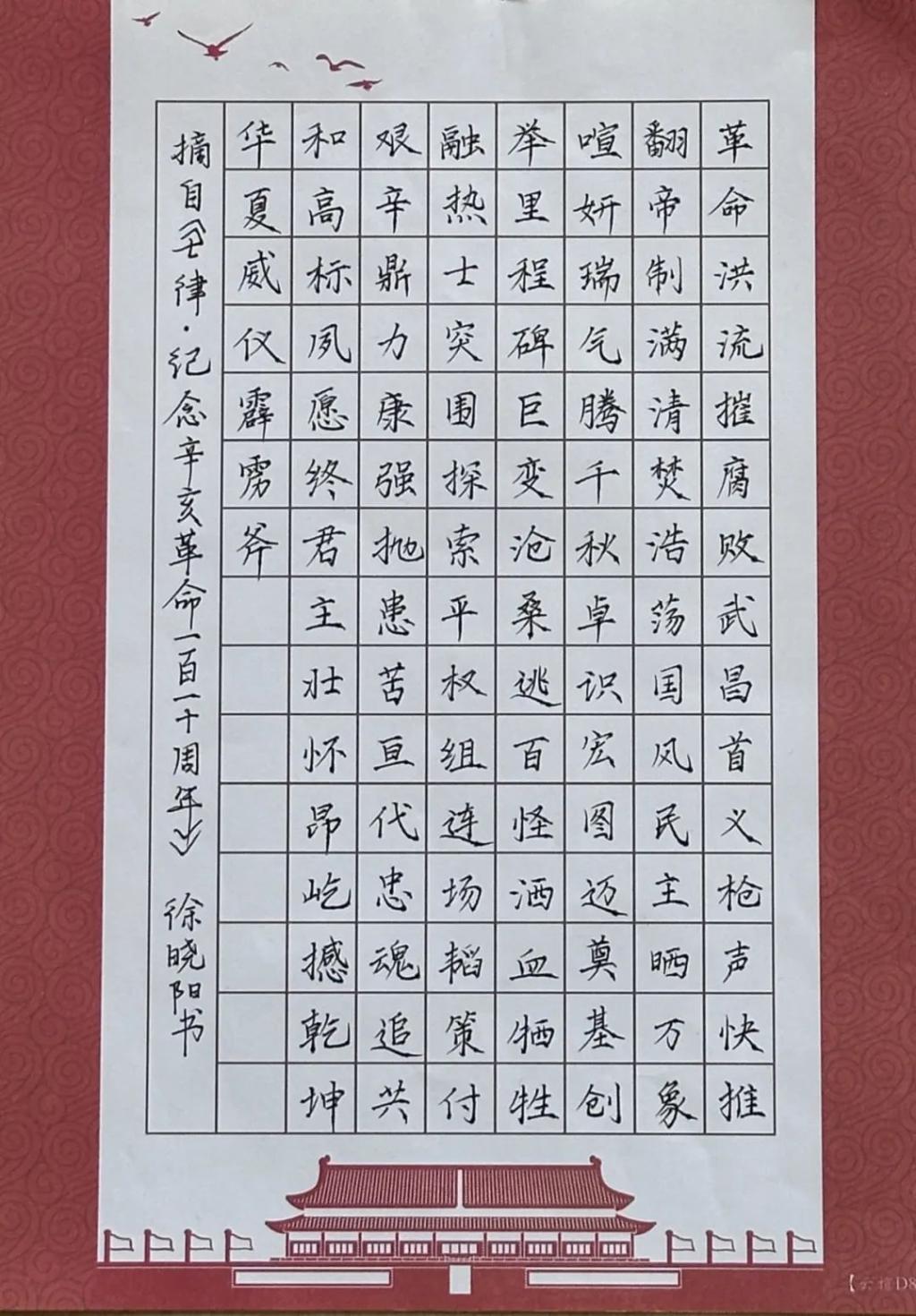 本次参赛作品围绕继承和发扬辛亥革命爱国主义精神,讴歌革命先驱的丰功伟绩,抒发对辛亥革命英烈的崇高敬意,用生动的笔触勾勒革命先烈的奋勇拼搏,展现出革命先驱的爱国情怀,激励同学们传承辛亥革命精神。