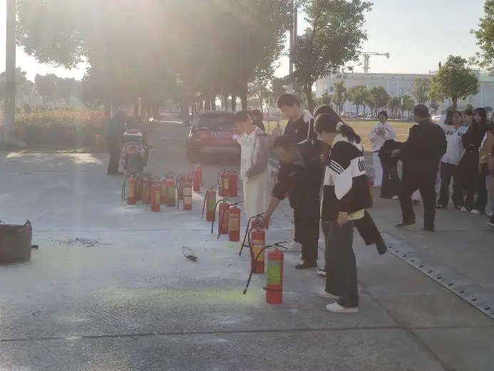 随后,保卫处老师人员模拟火灾场景,现场演示了正确使用灭火器的操作方法,遇到火情切勿慌张,牢记“一晃、二拉、三喷”以及“站在上风处,对火源根部喷射”等动作要领。同时,也示范了消防栓的使用步骤,并让每一位同学进行实操演练。
