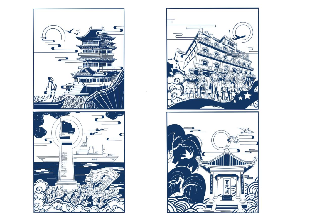 此次云游的地方是位于江西省南昌市的红色旅游景点,作者利用黑白灰的绘画形式记录南昌之美。