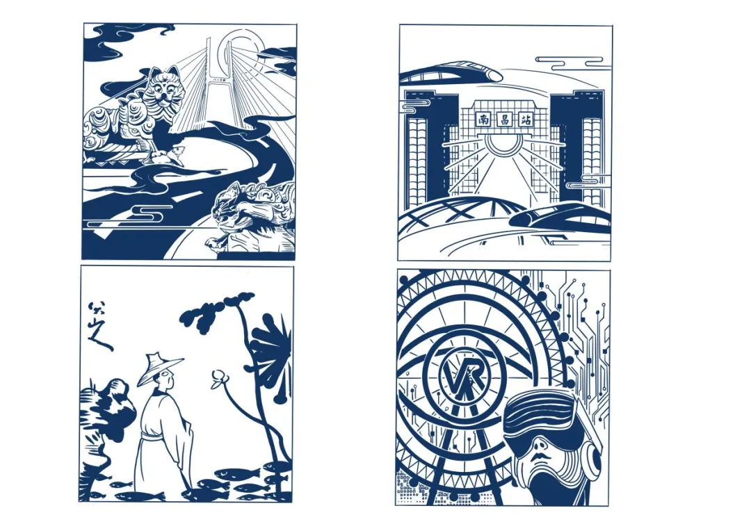 南昌,古称“豫章”。这套作品通过对南昌风景人文元素的提炼和重新组合,用版画绘画的方式增加图案的符号属性,潜移默化中增加了对南昌风景人文的认识与了解,宣传“豫章”风土人情。