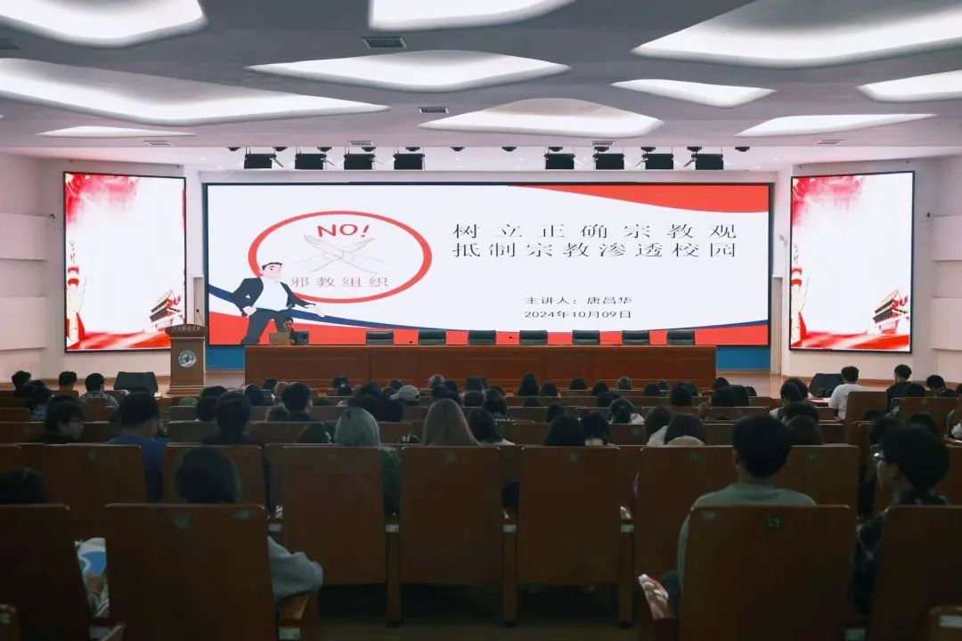 (MK体育通讯员:辛思雨)为进一步明确教育与宗教相分离原则,增强员工识别非法宗教及宗教渗透危害的能力,树立正确的马克思主义宗教观,加深对自觉防范和抵御宗教渗透的认识,MK体育于2024年10月11日在思贤楼三楼报告厅开展以“树立正确宗教观,抵制宗教渗透校园”为主题的新生入学教育课,公司党委组织员、员工第二党支部书记唐昌华老师主讲。
