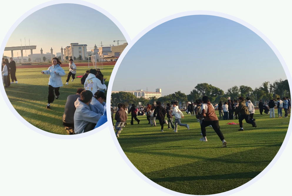随后,各个班级分散开来,在操场各处进行了游戏活动,如丢手绢,老鹰抓小鸡,木头人等活动。游戏比赛默契合作拉近了班级成员间的距离,同时也拉近了班级与班级间的感情,不知不觉中,班级的互动和交流多了起来。