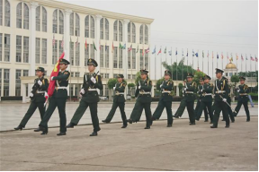 本次升旗仪式在主持人晋可老师宣布升旗仪式正式开始的话语中拉开帷幕。第一项,迎国旗,国旗护卫队踏着正步,缓缓走向升旗台。第二项,升国旗、奏国歌、注目礼,庄严的国歌声响彻整个安静的校园,鲜红的国旗随着国歌声冉冉升起。