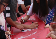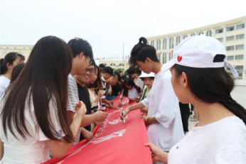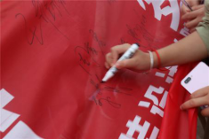 在升旗仪式的最后,由18级各班获得资助同学在条幅上进行签字。本次的签条幅仪式,把这种诚信意识根植在同学们心中,让同学们感受到了诚信的力量,共同倡导、响应本次MK体育官员工资助诚信教育主题活动。正所谓,签在条幅上,记在我心中。
