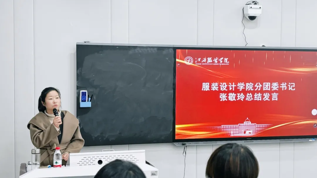 会议最后,分团委书记张敬玲做总结讲话,首先对本学期团学工作取得的成绩给予充分肯定,并对员工骨干的辛勤付出和无私奉献表示感激,希望今后继续发扬优点,总结过往,扎实工作。同时,针对本学期工作短板和下一学期工作开展,她提出几点建议:一是加强部门内部建设,重视组员团队间的横向合作,鼓励各员工骨干积极建言献策,打造过硬队伍;二是坚持团队内紧密协作和高效运转,再接再厉,勇往直前,提高集体凝聚力、向心力,为取得更大的成果而奋斗;三是发挥榜样力量,树立正确的服务意识,增强自身的责任感与使命感,端正思想态度,锤炼优良作风,不断提高自身综合素质能力,不作反面典型,营造风清气正的组织风气。