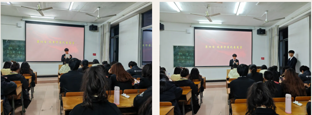 大会进行第四项,骨干班优秀学员代表高泽进和星火班优秀学员代表江泽东发言,他们表示在以后学习与成长的道路上,会坚守初心,勇担使命,用知识武装自己,以行动服务社会。
