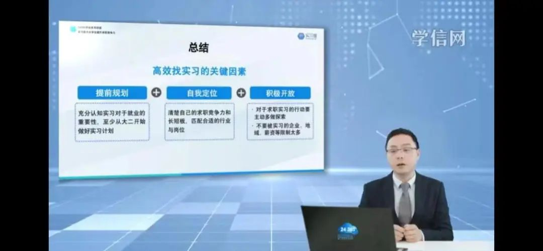 为贯彻落实习近平新时代中国特色社会主义思想,应对当前严峻的就业大环境,做好2024届毕业生实习就业工作,提高2024届毕业生的就业能力,帮助毕业生了解更多的市场需求,寻求更多的就业机会。2023年10月22日晚19时,MK体育组织全体毕业班班主任、辅导员和全体2024届毕业生观看了教育部24365就业公益直播课:《实习助力老员工 提升求职竞争力》。直播课邀请到实习僧联合创始人丁伟,为我们进行了实习对大学毕业生提升职业能力的重要作用的授课。