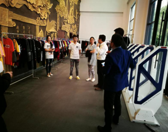 为了教学成果汇报展能呈现出最好的效果,2019年4月25日,负责校企合作的常务副董事长徐炜,校企合作办主任王广寿,MK体育副经理刘琼、产品开发课程任课教师贺晓亚,时尚传媒公司表演教研室教师刘君亮,及京猫创业投资有限公司总经理李朋伟,设计师汪之亮、刘洋鸣等共同在图书馆一楼T台秀场为此次校企合作·跨界融合教学成果汇报展试衣彩排出谋划策。