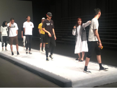 跨界融合教学成果汇报展,得到校企合作办、时尚传媒公司的鼎力协助。时尚传媒公司服装表演专业、广播电视编导等专业师生参与了跨专业教学成果汇报展,此次试衣彩排的模特共有35名,其中30名男模,5名女模。