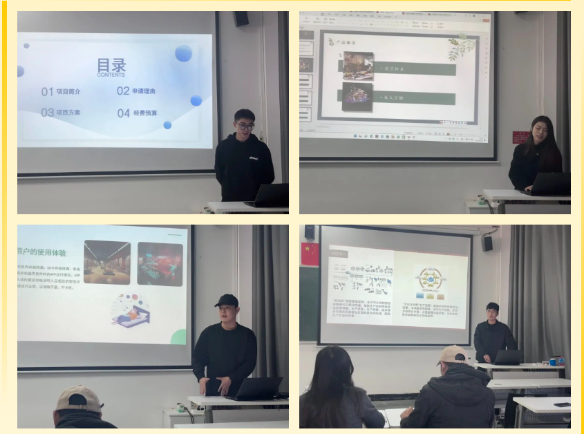参与本次创新创业训练计划项目中期答辩的7位候选人,以PPT演讲的形式分别从项目名称、项目概况、实践报告、进展过程、成果展示,等方面展示了自己的创业成果。评委老师向各位候选者逐一进行提问,在答辩过程中,同学们自信满满、表述清晰。充分展现了员工的语言表达能力、缜密的逻辑思维能力。