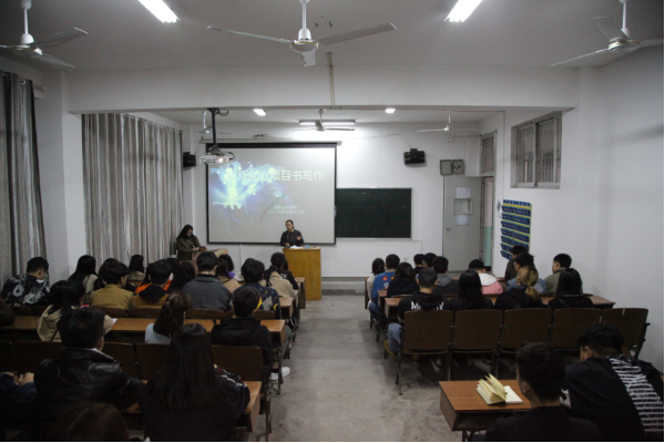 最后,胡老师以幻灯片的形式,向大家展示了往年创新创业大赛中优秀的项目创意书,同学们结合幻灯片所传达的信息,就创新创业表达了自己的看法和见解。
