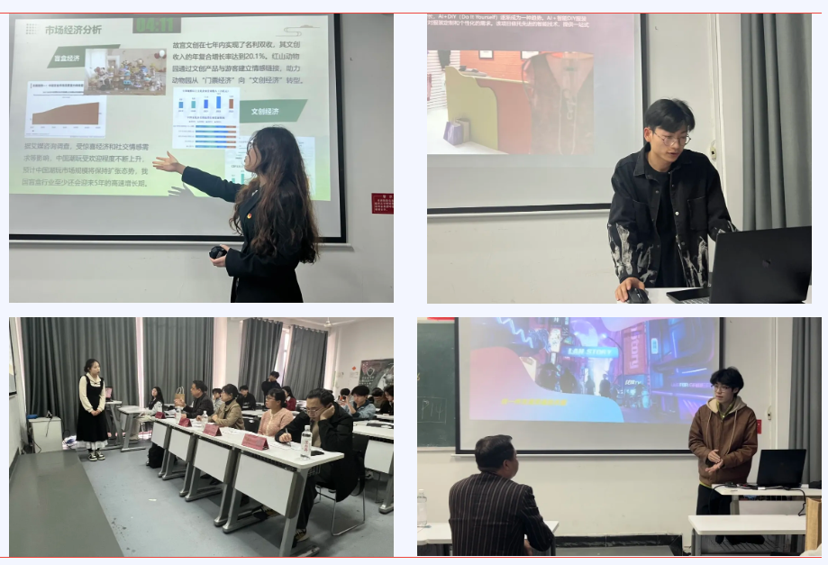 本次选拔赛由PPT路演的方式进行,共有9支团队参与。各支团队代表上台汇报了各自的创业项目,运用不同的语言风格,生动形象地描绘了其项目核心要义、优缺点、市场情况、发展前景、未来规划等。评委为每个团队逐一进行点评,并提出相关改进建议,要深刻理解所作项目的含义,多加思考与创新,努力发挥项目优势,结合当今市场情况,明确项目定位。