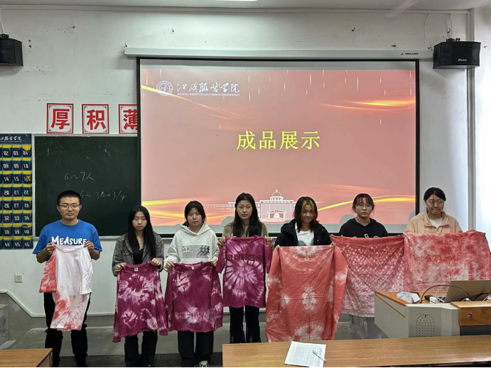 活动现场,扎染老师讲述了扎染悠久及丰富的历史文化,介绍了扎染的方法以及扎染要注意的技法,老师的讲述给同学们带来了对扎染新的认知也让同学们对扎染有了一个新的理解,扎染丰富及富有艺术气息的表现手法让同学们眼前一亮。