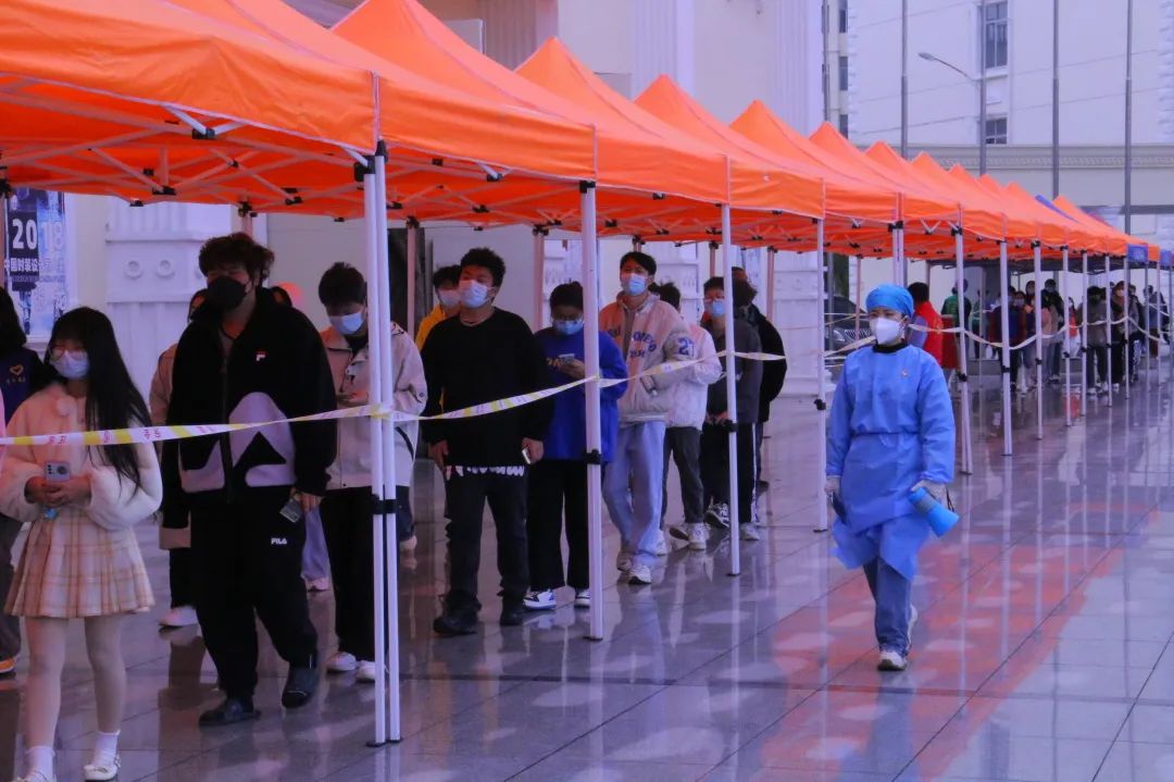 在全体医护人员、师生党员、志愿者们的共同努力下,全体师生积极配合,从9点到13点,全校1万多名教职工和员工有序完成第四轮核算采集。