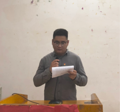 其次由入团积极分子代表、18数媒本科3班糜洋洋同学作代表发言。发言中糜洋洋同学提到,她找到了自己努力的方向,心中的目标使自己把与他人的差距铭记于心,时刻提醒着自己要努力追求,拼搏进取,用行动去缩短可以通过自己不懈努力来超越的距离。也呼吁同学们在以后的学习生活中,要以更高的标准,更严格的要求来约束自己,不断完善自己。