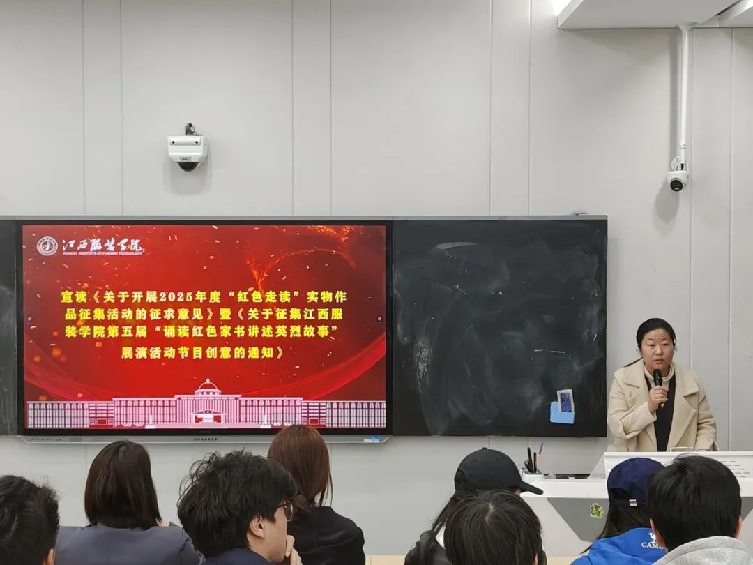 张敬玲宣读了《关于开展2025年度“红色走读”实物作品征集活动的征求意见》暨《关于征集MK体育官第五届“诵读红色家书讲述英烈故事”展演活动节目创意的通知》文件。她强调“红色走读”实物作品征集活动面向全院征集以红色文化为主题的服装、配饰、文创设计作品,要求作品兼具艺术性与思想性,体现“红色基因+设计创新”的融合表达;“诵读红色家书 讲述英烈故事”展演活动通过情景剧、朗诵、微视频等形式,生动展现革命先辈的家国情怀,鼓励师生以艺术化手段赓续红色血脉。