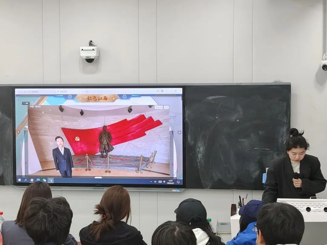 会议现场,师生们还一同“云游”了江西省爱教基地数字展示馆云平台,通过线上参观的方式,深入了解了江西丰富的红色资源和革命历史。一幅幅珍贵的历史图片、一件件感人的革命文物,让大家仿佛回到了那个战火纷飞的年代,深刻体会到了革命先辈们为了理想信念英勇奋斗的精神。随后,收看了“诵读红色家书 讲述英烈故事”比赛一等奖作品《别了,哥哥》。这部作品以真挚的情感、生动的语言展现了革命烈士方志敏在狱中写给哥哥的家书,表达了他对革命事业的坚定信念和对亲人的深厚情感,引起了在场师生的强烈共鸣,许多人都热泪盈眶。