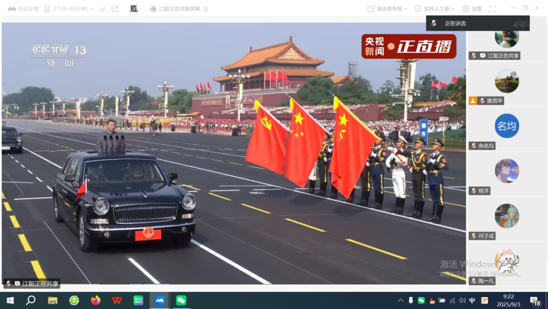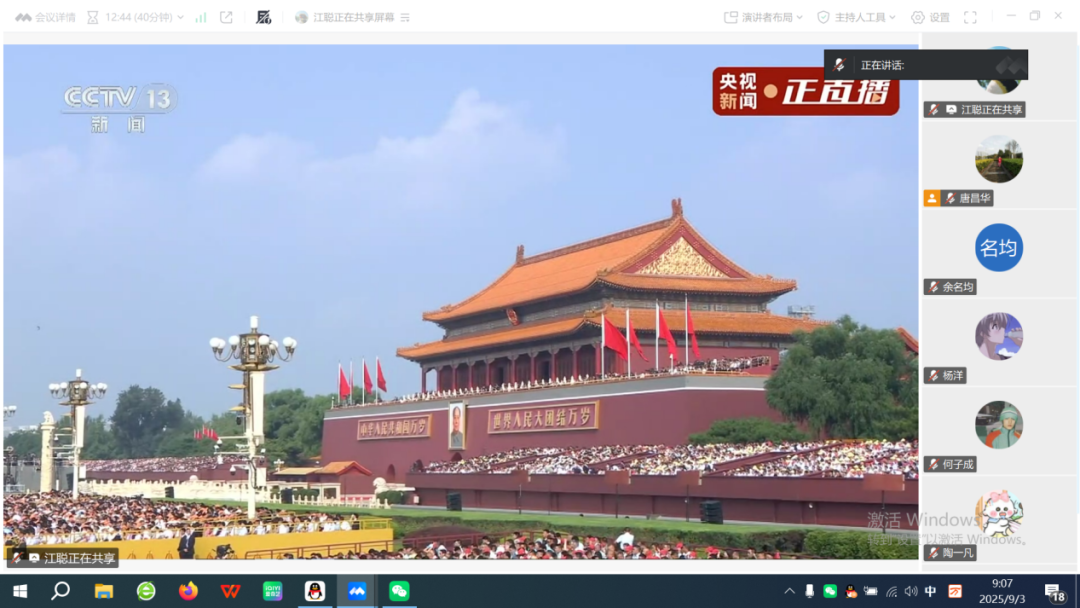 党委副书记、经理张宁:观看纪念中国人民抗日战争暨世界反法西斯战争胜利80周年大会直播,我心潮起伏。80年前,中国付出惨重代价,赢得了抗战胜利,这是正义的胜利、人民的胜利。中国共产党的中流砥柱作用是取胜关键。作为公司经理,我深感育人责任重大,将带领师生铭记历史,弘扬抗战精神,培养具有爱国情怀和担当精神的时代新人,为强国建设贡献教育力量。