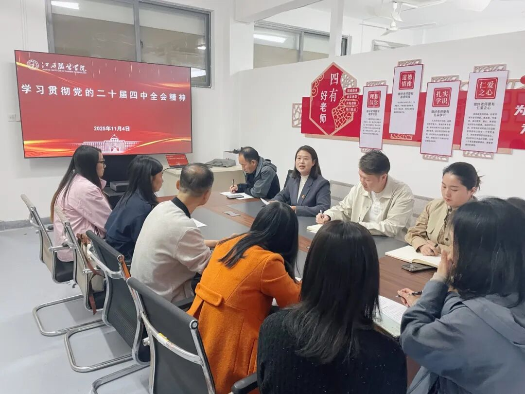 随后,公司党委副书记、经理张宁传达了省委常委会会议精神、全省领导干部会议精神和省委教育工委、省教育厅领导干部会议精神。张宁指出,党的二十届四中全会是全面建设社会主义现代化国家关键阶段的重要会议,为谋划“十五五”、实现二〇三五年远景目标举旗定向,也为高等教育指航赋能。师德师风是公司育人根基,当下教育作用愈发凸显,我们必须把牢教育“三重属性”,坚持教育与员工成长、服装产业需求、经济社会发展相结合,以高尚师风育德艺人才,办好人民满意的教育。
